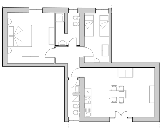 Trilocale con balcone: circa 80 mq. composto da cucina – soggiorno, camera matrimoniale, camera doppia, bagno con doccia, terrazza riservata con tavolo e sedie. 2 ulteriori posti riservati a ragazzi massimo 14 anni in divano letto zona living, aria condizionata, lavastoviglie.